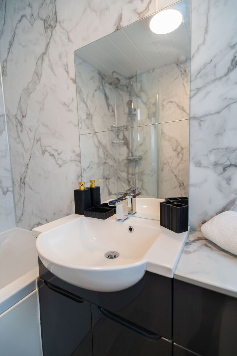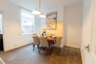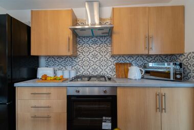 Guests benefit from a fully equip kitchen and dining area for self-catering, along with laundry facilities, fast Wi-Fi, and a smart TV in the living room, providing the perfect space to relax and recharge after a long day.